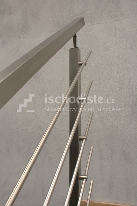 Viereckiger Edelstahl-Geländerpfosten 40 x 40 mm mit Seitenverankerung für die Edelstah-Stabfüllung mit dem Durchmesser von 12 mm. Der Geländerpfosten mit der Seitenverankerung ist für die Bordwand des baukastenförmigen Edelstahl-Treppensystems bestimmt. Der angeführte Preis umfasst folgende Komponenten: Verankerung, Handlaufshalterung und 6 Stück Füllungshalterungen